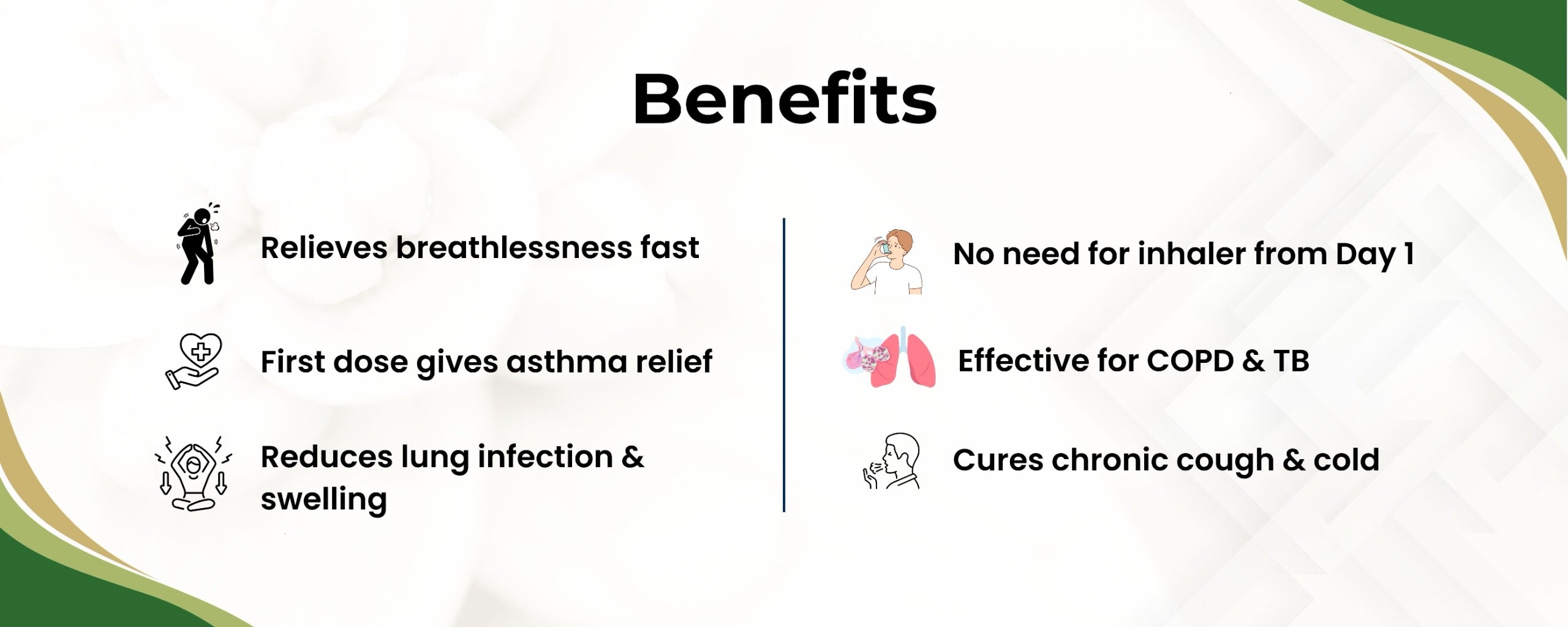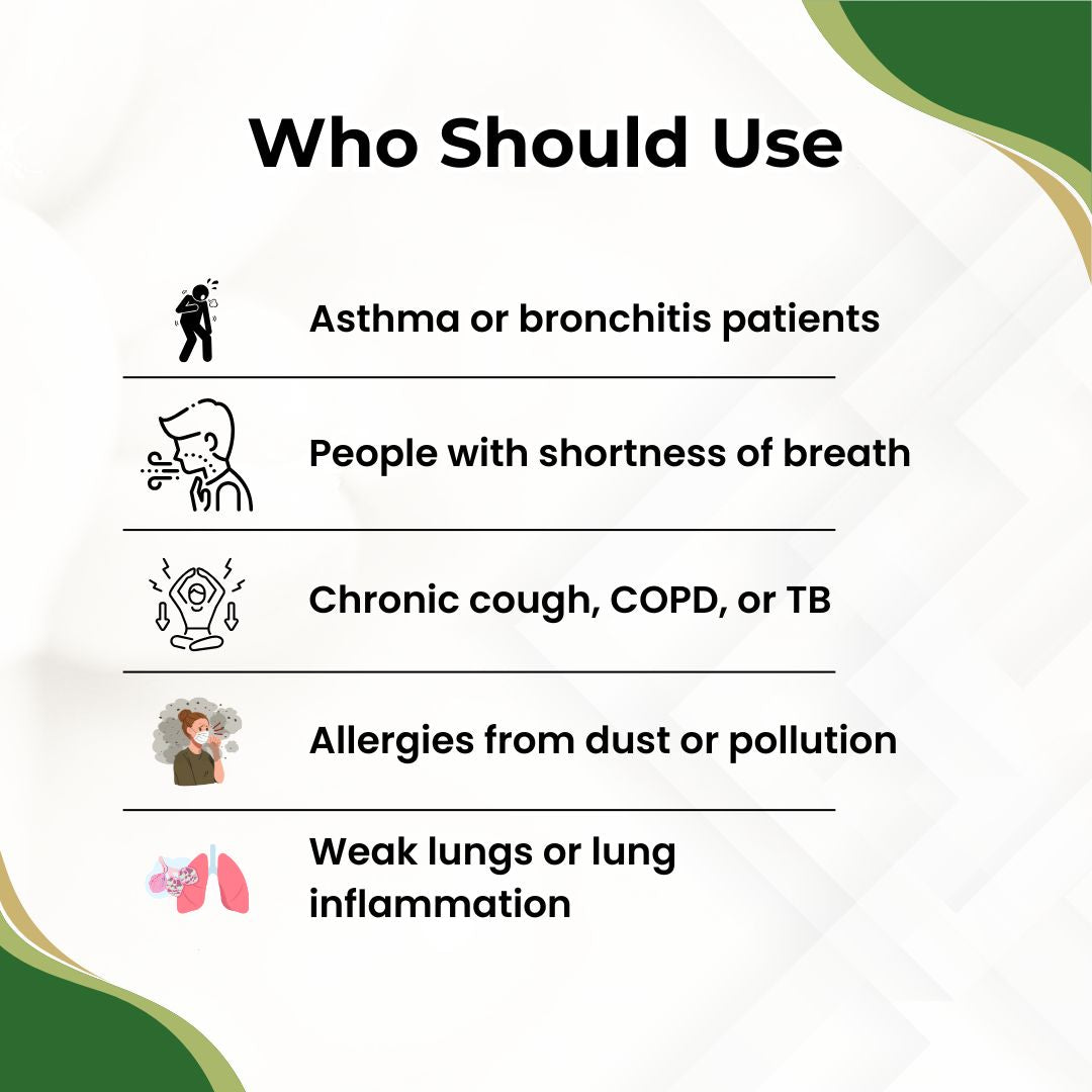 Relief from cough, congestion, and breathing difficulty may be noticed within 1–2 weeks, while regular usage for 3-4 months helps in improving long-term respiratory health