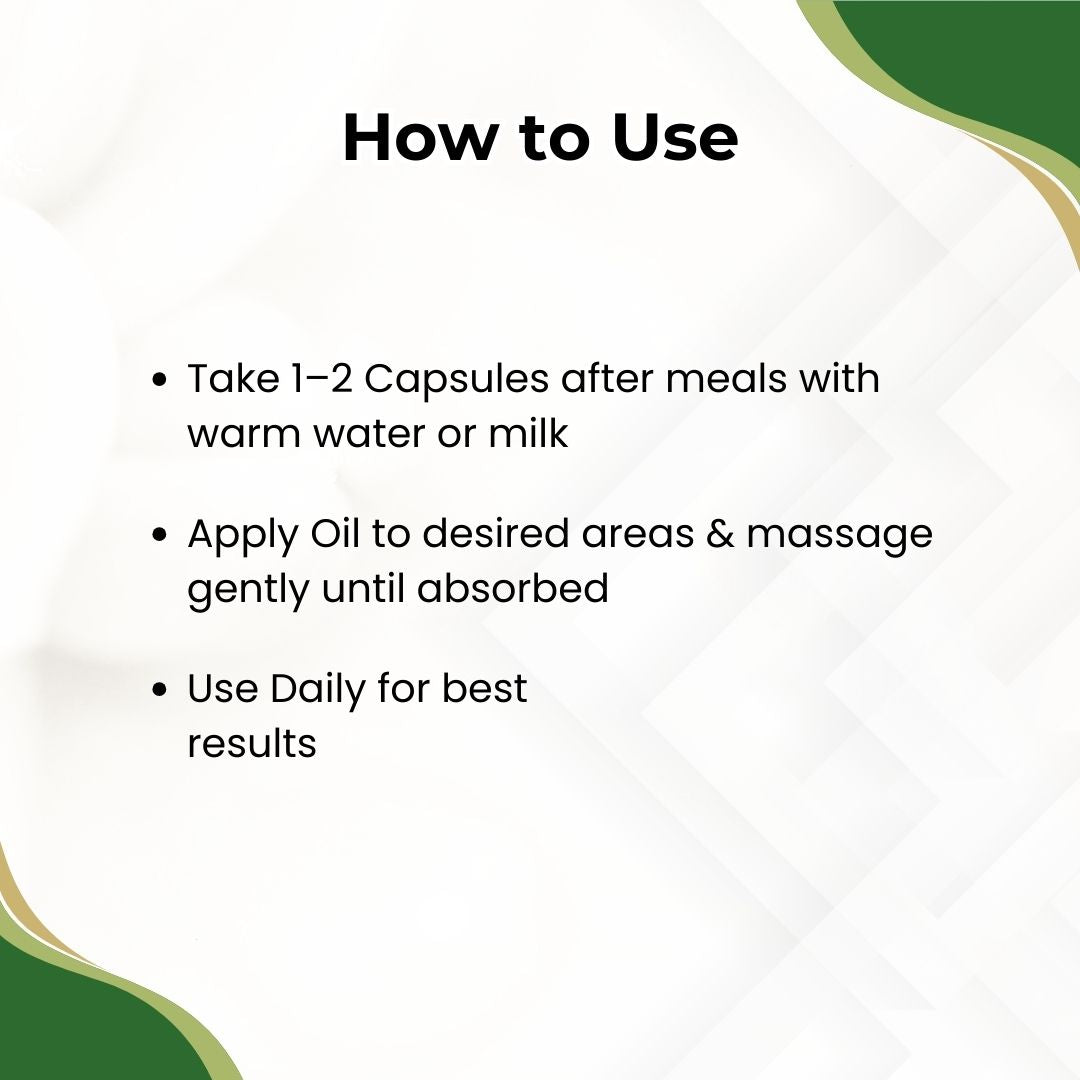 The capsule supports overall vitality and wellness, while the oil helps create a relaxing and intimate experience. Together, they can complement a healthy lifestyle and promote connection and comfort